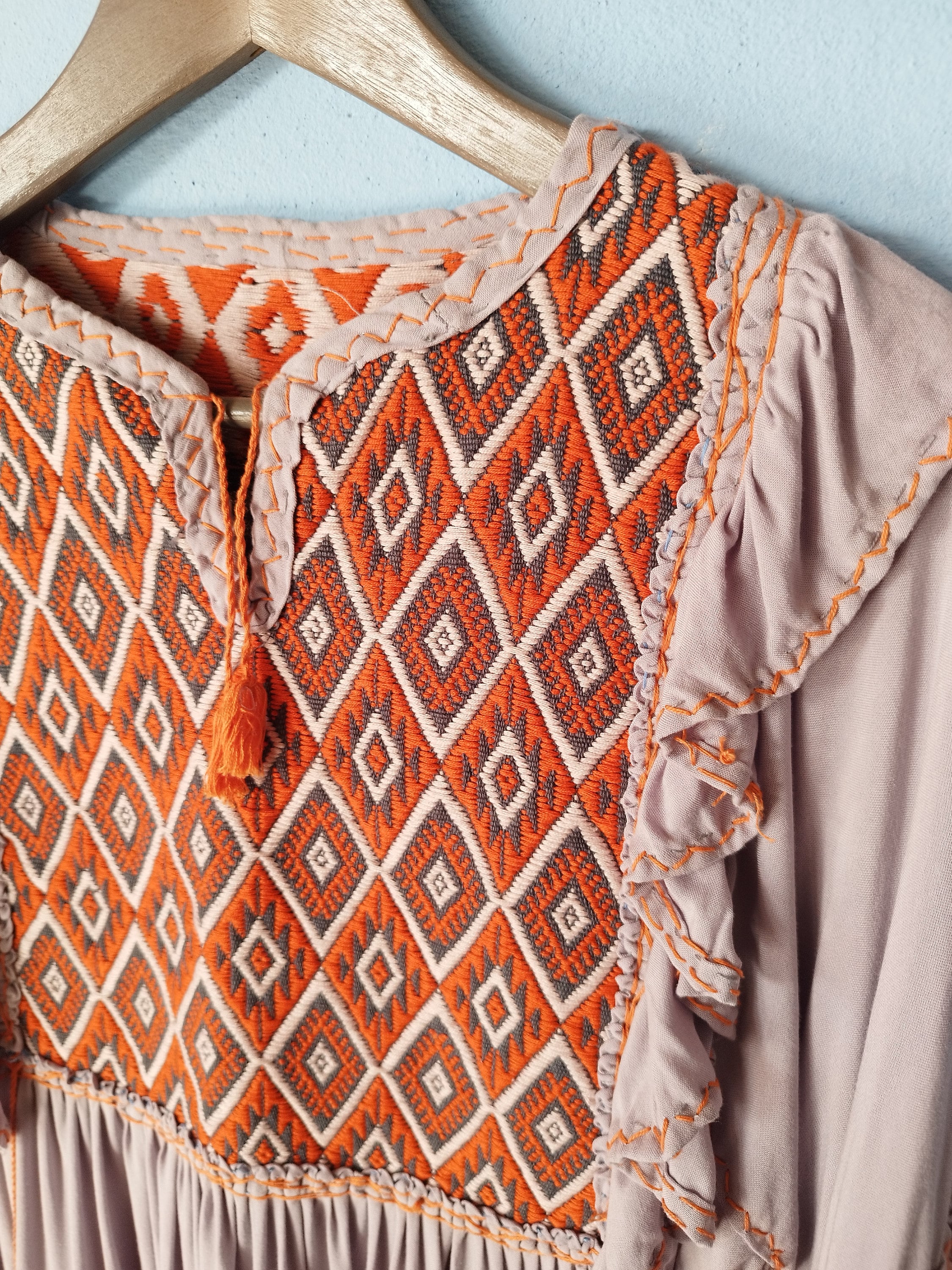 Made without a sewing machine and hand embroidered by artisan women from the southern part of Mexico.